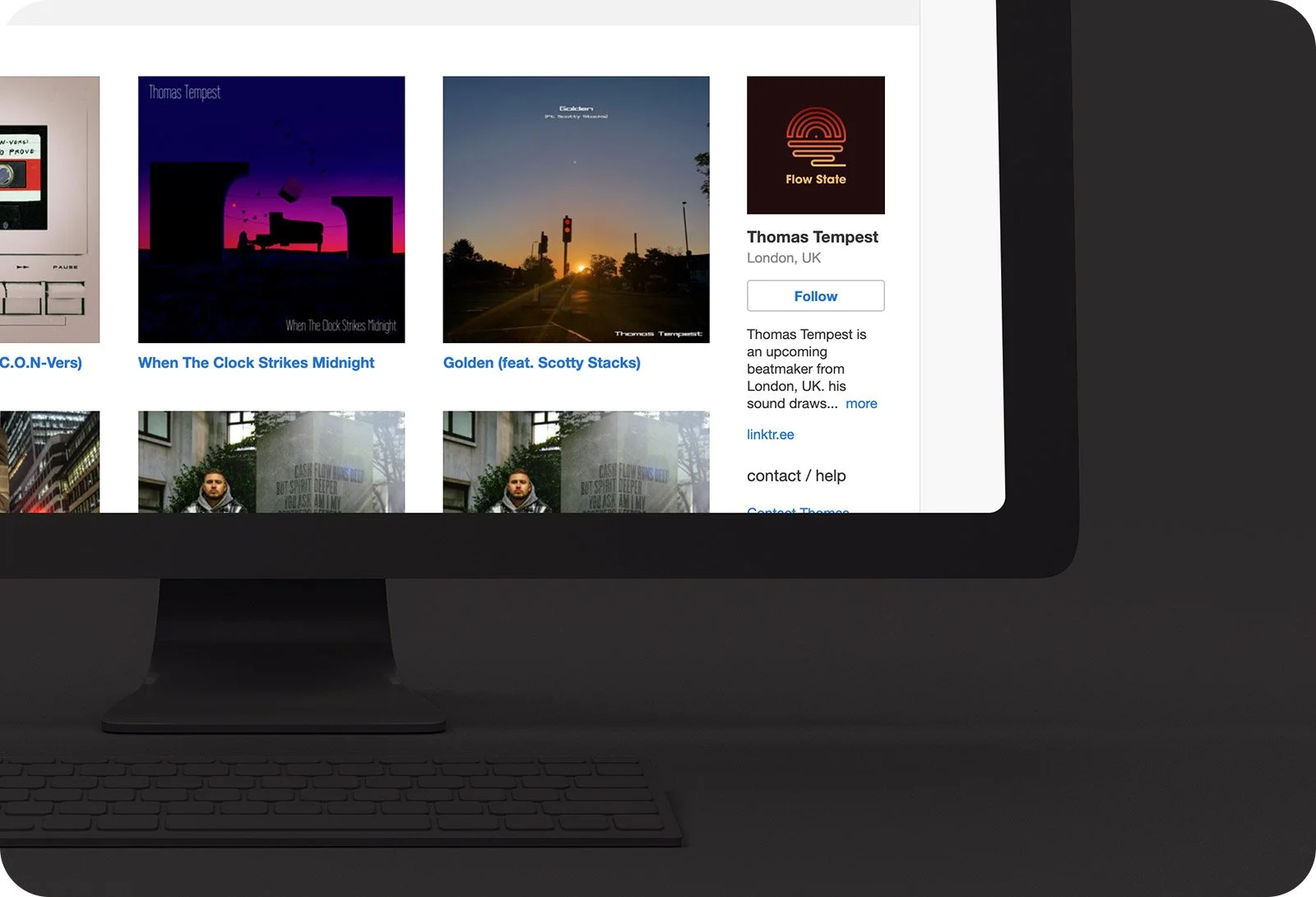 Tom Moore, a lo-fi/hip-hop music artist from London going by the moniker Thomas Tempest approached me to create a brand identity and website for his burgeoning record label Flow State.